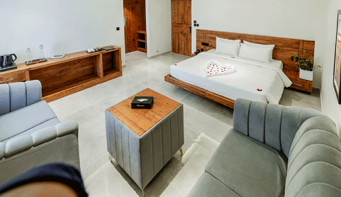 Step into a haven of tranquility, where every room is crafted to offer the perfect balance of elegance and relaxation. Designed with thoughtfully curated interiors, each space is adorned with warm tones, plush furnishings, and soothing ambient lighting, creating an atmosphere of peace and comfort. Modern amenities, including luxurious bedding, high-speed connectivity, and personalized services, ensure a seamless and enjoyable stay.