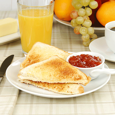 Choice of Fresh Juice / Toast / Bread Rolls served with Preservatives followed By Tea & Coffee.