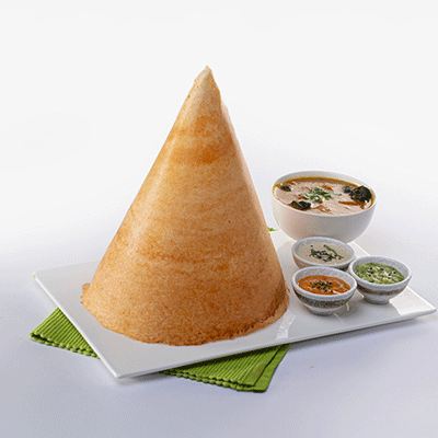 plain or masala or Ghee or podi accompanied by sambar and chutney.