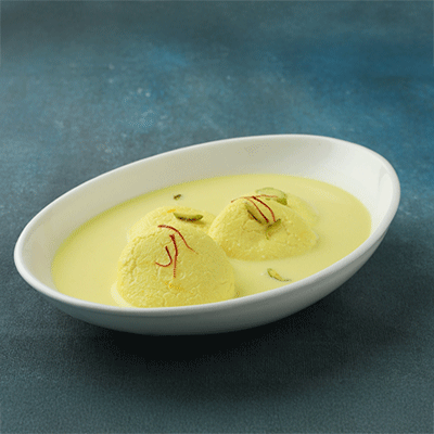 Soft Rasamalai soaked in sweetened milk, topped with lychee for a fruity twist.