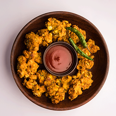 Crispy, golden fritters made from onion, paneer, or mixed vegetables.
