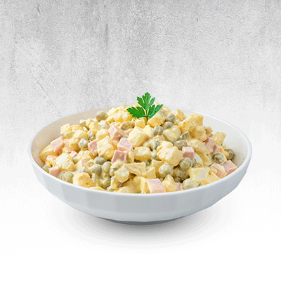 A creamy salad made of boiled vegetables and a rich mayonnaise dressing.