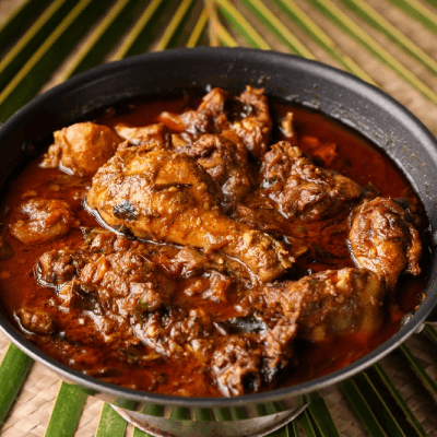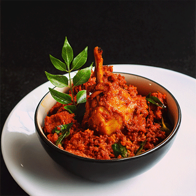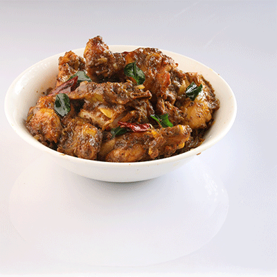 A dry, flavourful preparation of chicken cooked with roasted ground spices.