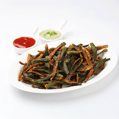 Crunchy fried bhindi or baby corn, spiced with masalas for an irresistible snack.